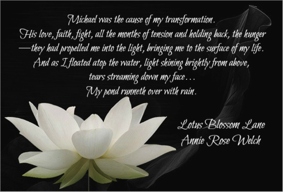 Life after Yuma was blissful for Layla and Michael.  After the turmoil of the old Red Dirt Road, their journey seemed to be moving them in the right direction, leading them to Ireland, Michael’s birthplace, where history runs deep and secrets run even deeper.  As the road to happily-ever-after leads them down Lotus Blossom Lane, years of entombed history starts to emerge, changing the course of their lives forever.  And the person waiting for them at the end of Lotus Blossom Lane, one of the biggest starts in the world, will bring them to the Crossroads of the Saving Angels Series.