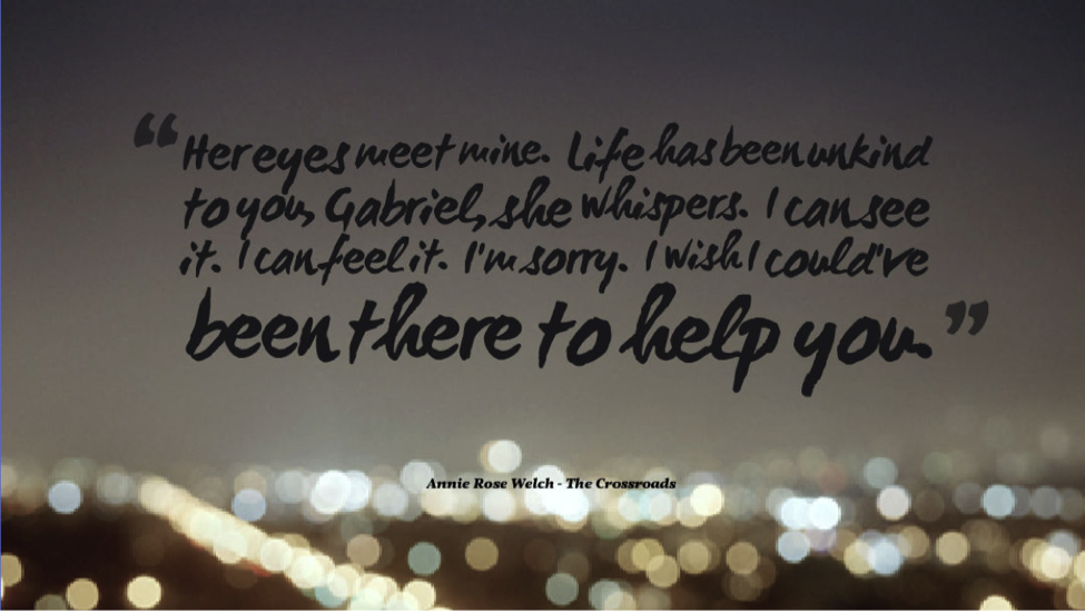 Gabriel Roberts found his happily ever after at The Crossroads of his life. He found his brother, Michael, his history in the Legion, and the love of his life, his Evangeline. He has finally arrived at the place he always yearned for—home.