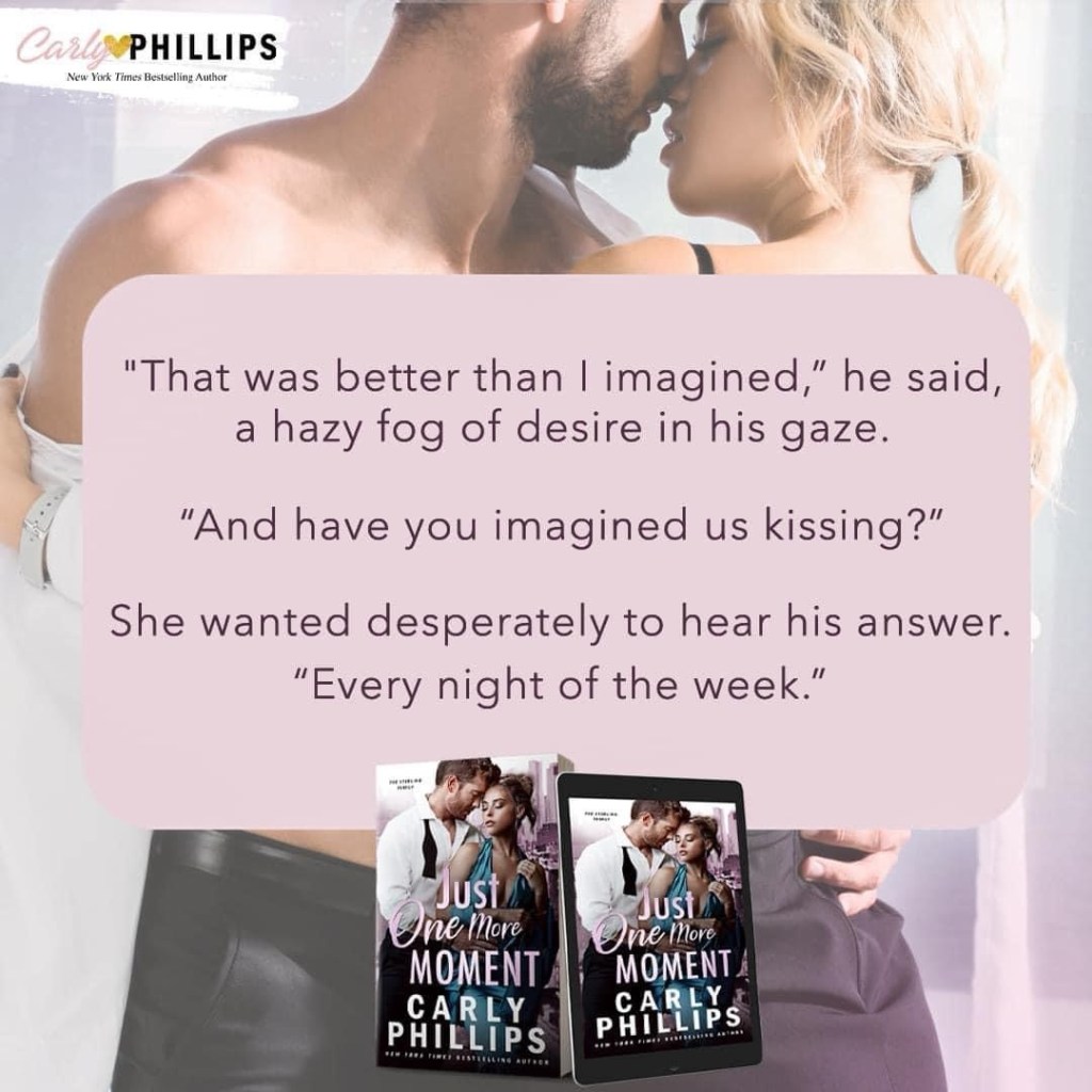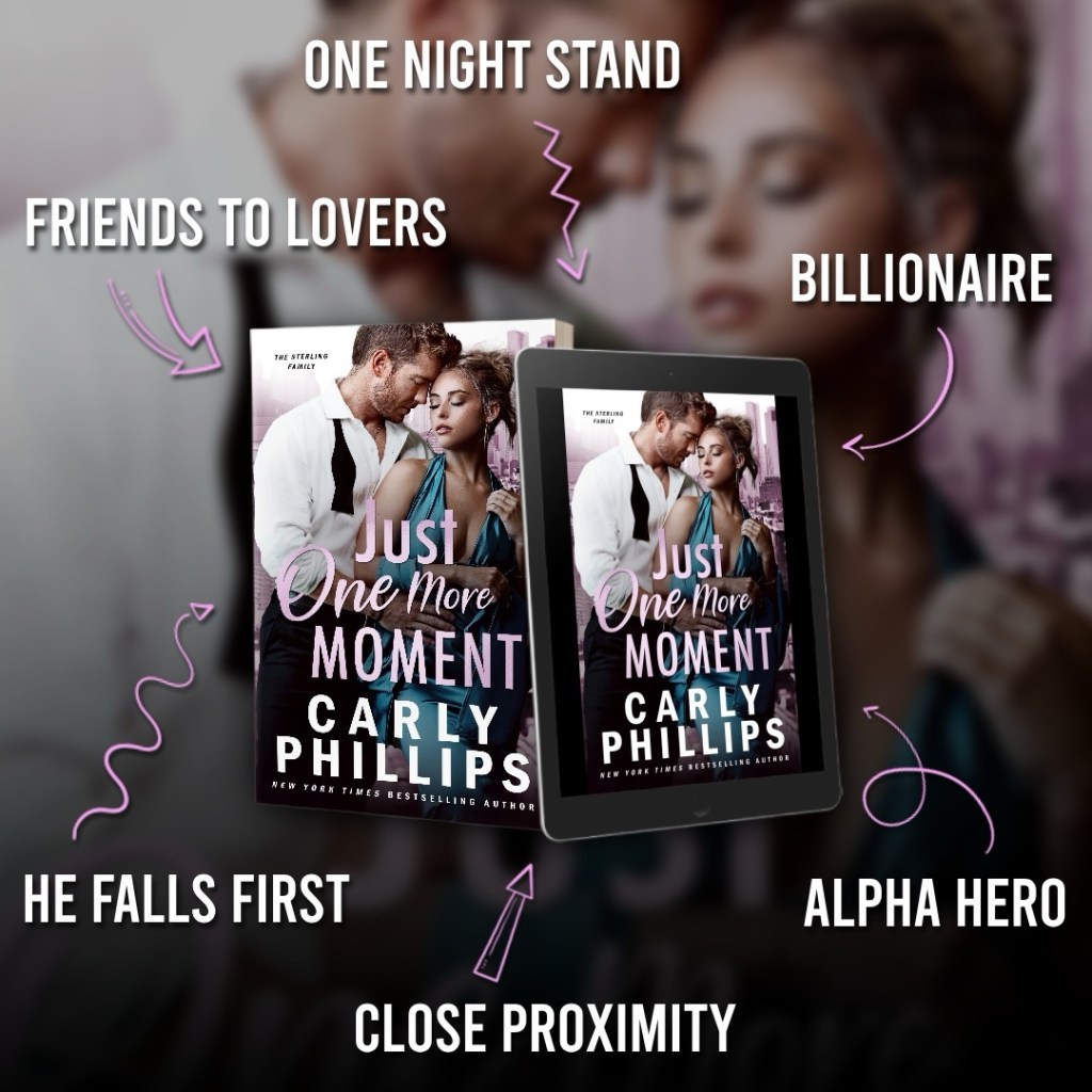 Just One More Moment, book 1 in the Sterling Family series (all can be read as standalones), is a spicy contemporary romance featuring a ready-to-run heroine and the possessive, protective alpha hero who is more than ready to catch her.