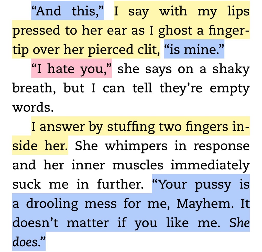 I adored how Riggs treated Monroe once he got his head out of his butt and began to realise how special she was. He showed such a caring, sweet, considerate and protective side that was slightly unexpected but really adorable. His kink was off the charts hot and I loved how he cared for Monroe afterwards.