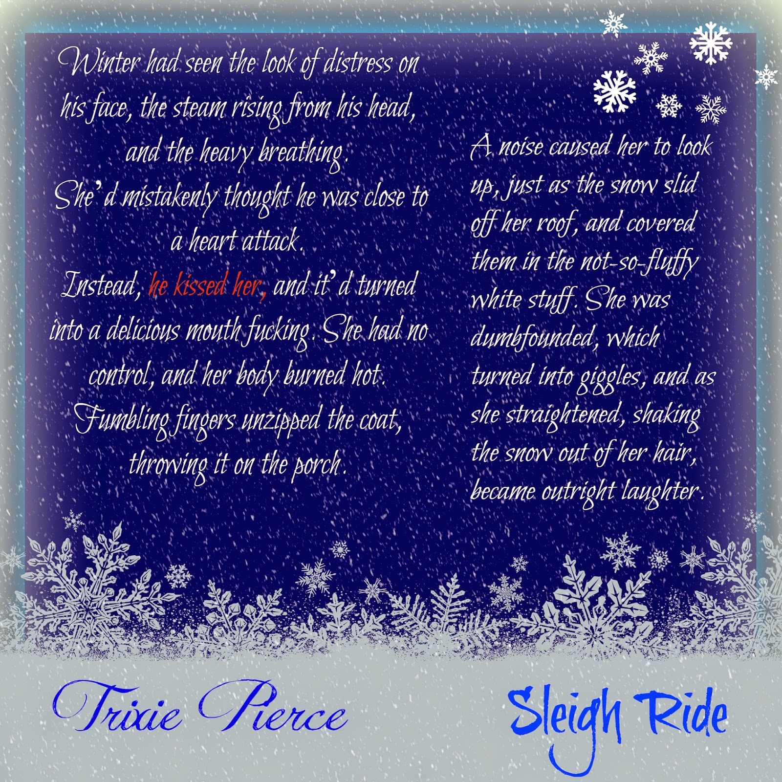 He smiles the warmest, gentlest smile I’ve seen in a long while. His fingers caress my face as he looks at me intently. He leans in to kiss me, taking my breath away. His lips are soft and needy, so much so that I want to steal another one when our lips unlock.